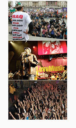 audiences ranging from tens of thousands in Trafalgar Square to a